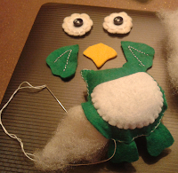 Quasi dimenticavo! Abbiamo bisogno anche di due bottoncini per fare gli occhi. E' facile! Sembra già quasi finito :)